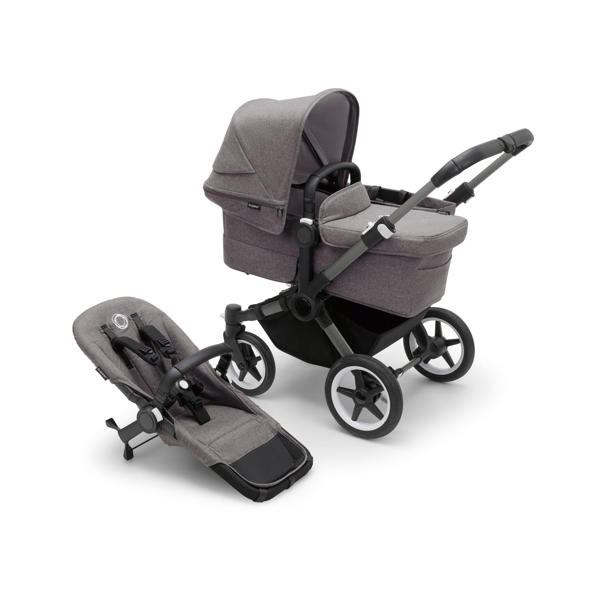 The Bugaboo Donkey 5 Mono Complete in Graphite/Grey Melange is here to take your daily adventures on the go. Offering multiple configurations, both as a single or double stroller, the Bugaboo Donkey 5 is versatile, easy to push, and ready for the future.