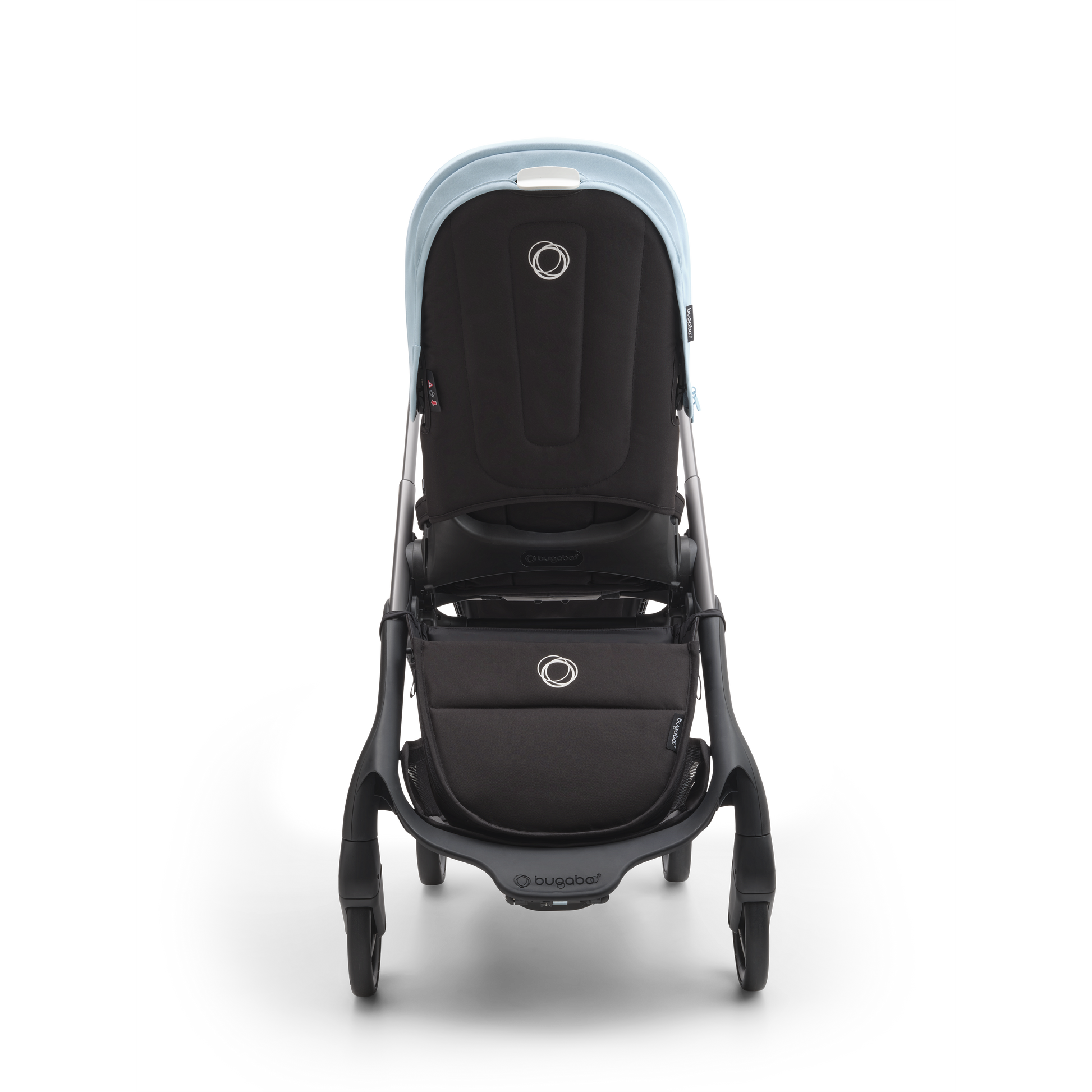 For any urban environment, the Bugaboo Dragonfly Pushchair in Graphite/Midnight Black-Skyline Blueoffers precision steering and full suspension. Plus, the new urban wheel design has enhanced traction for sharper handling and easier navigation.
