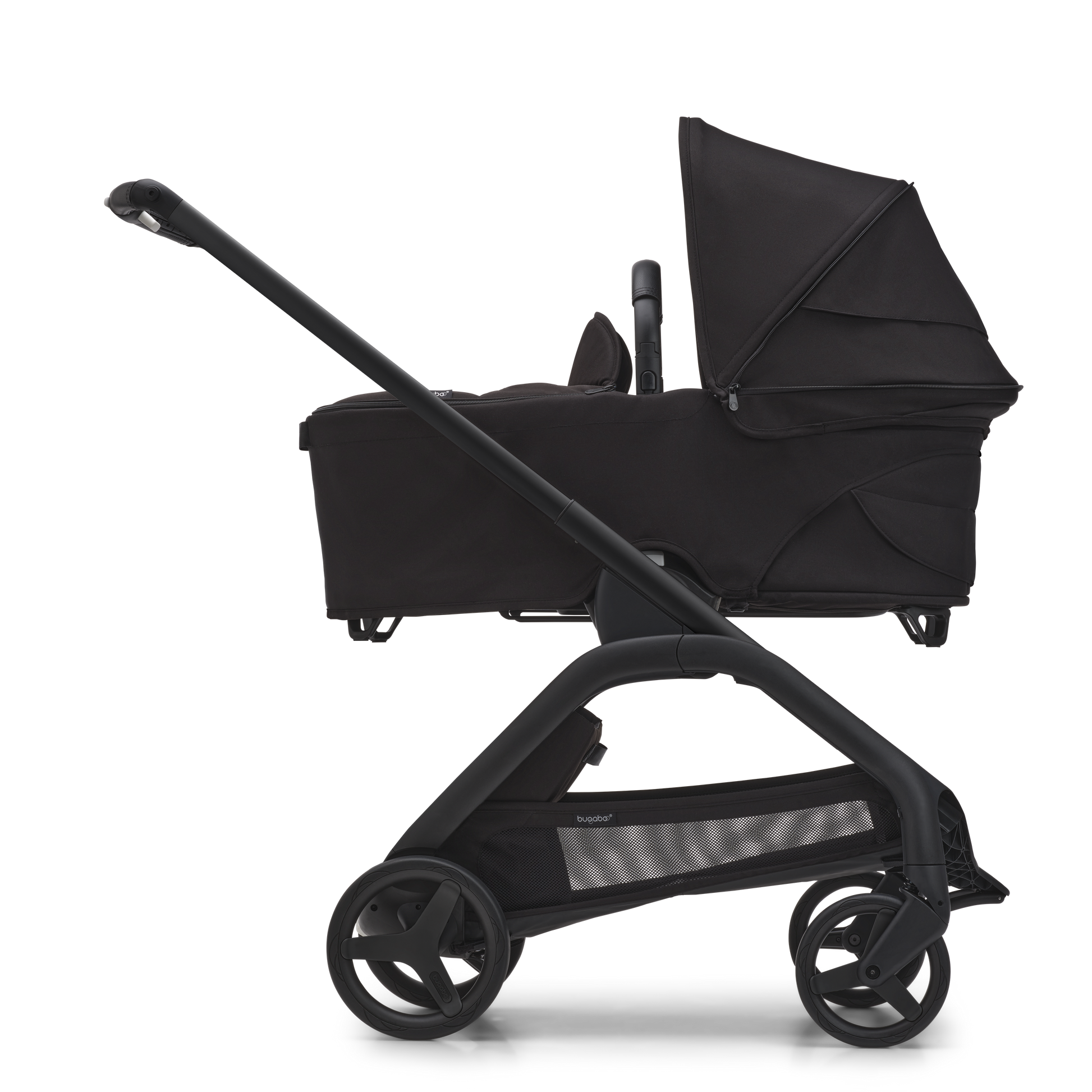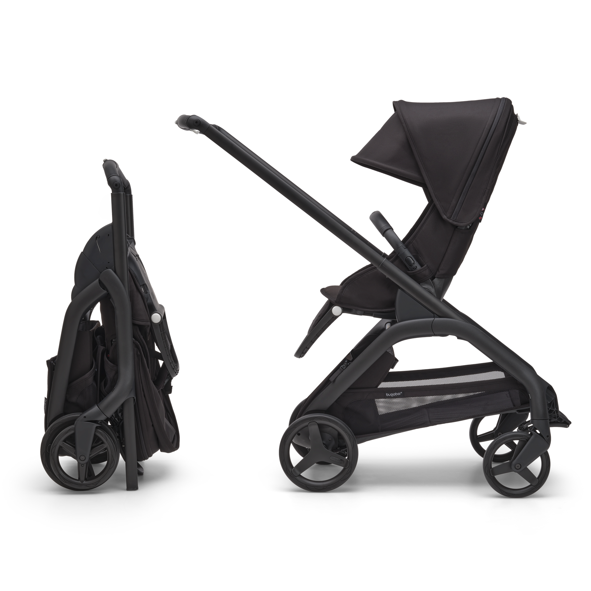 The Bugaboo Dragonfly Complete Bundle in Black/Midnight Black is the future city stroller where comfort meets compact. From the day your little one is born, there are many configurations to best suit you and your baby's needs, including a full-size bassinet with a built-in breezy panel. The extendable UPF50+ canopy is multi-functional rain or shine, including a pop-out visor for added protection and for toddlers, the easy buckle harness is padded for guaranteed comfort. On top of that, your essential everyday functionalities like stroller folding, bassinet removal or handlebar adjustments can be completed with just one hand.