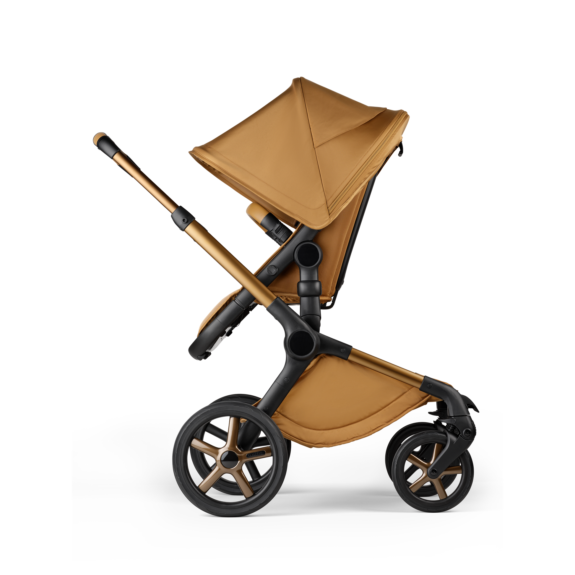 The Bugaboo Noir Limited Edition in Amber Glow – a Bugaboo Fox 5 exclusive. Elevated in three shades of the night, and crafted for exceptional comfort, this iconic all-terrain pushchair design goes beyond our best ride ever. The Noir limited edition features uniquely styled, sturdy yet light chassis and comfort Knit seat. The limited edition pushchair also has an extra large underseat basket with a new built-in cover to offer upgraded protection for your essentials.