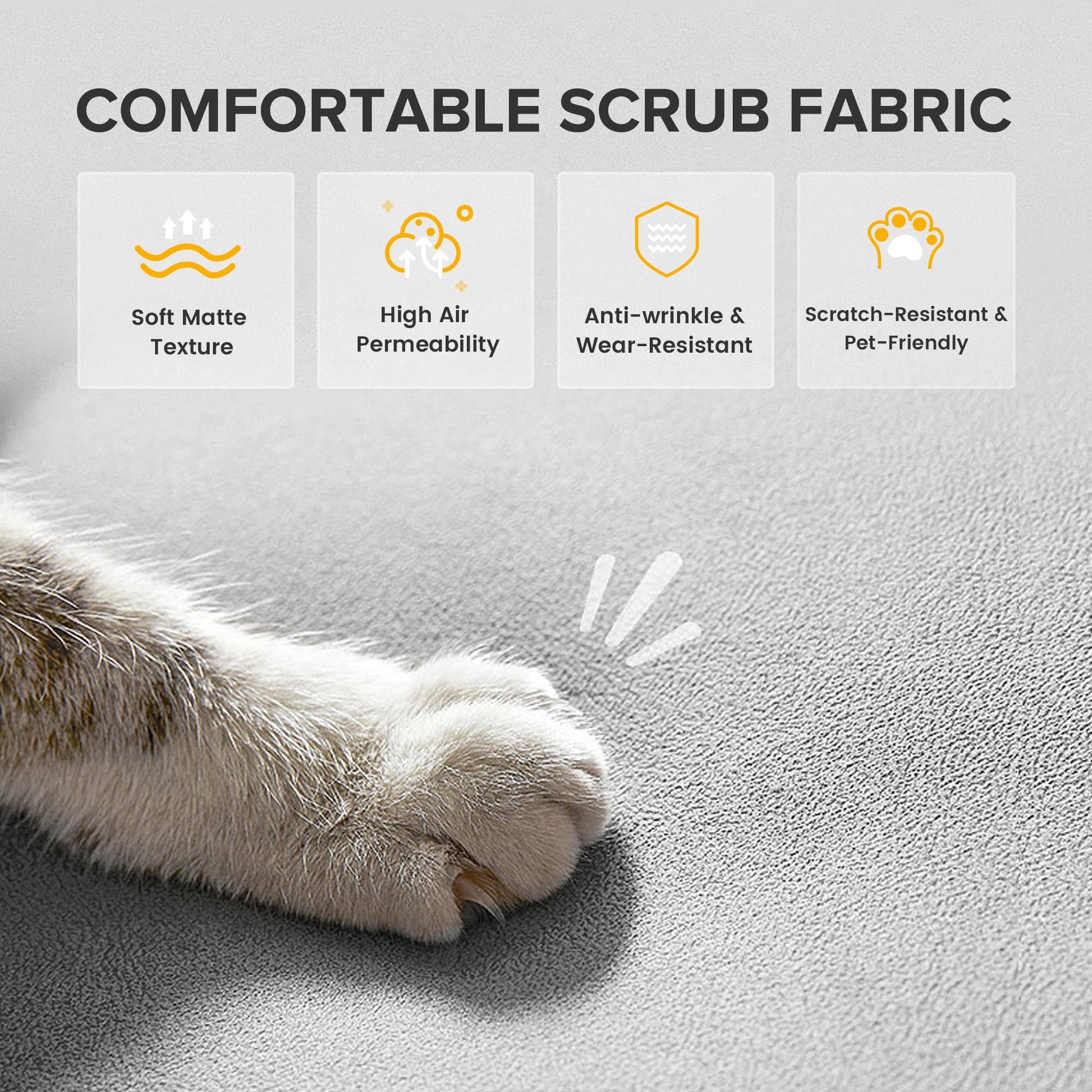 Soft, durable fabric upholstery in neutral grey