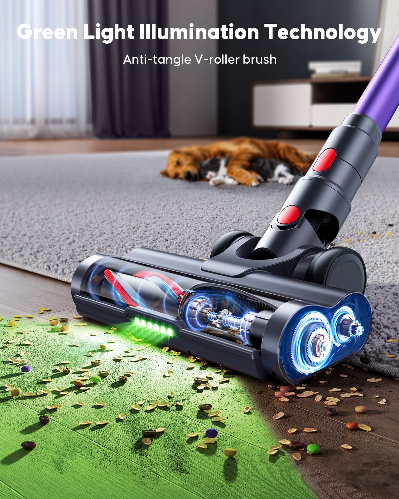 Powered by long-lasting batteries, this vacuum provides up to 60 minutes of runtime and features three charging options for maximum convenience. The advanced LED brush with a 270° design illuminates hidden dirt and prevents hair tangling, while the 1.8L dust cup allows longer cleaning sessions with fewer interruptions.