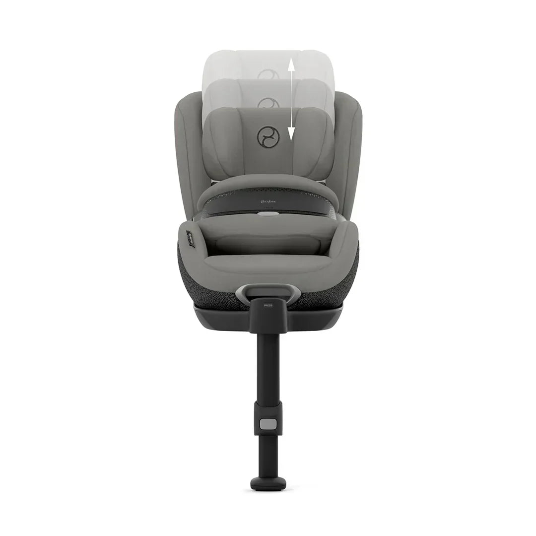 The Cybex Anoris T2 i-Size in Mirage Grey is a world leader in forward-facing car seat technology. A full-body airbag is housed in a small impact shield, upgraded with a depth-adjustment feature for a snug fit and freedom to move. Forward-facing travel allows more legroom, as well as easy interaction and eye contact with your child via your rear view mirror. On hot days, all-round air ventilation is enhanced by innovative mesh that's six times more breathable than normal car seat fabrics, while a retractable sun canopy gives shade. After the Cloud T i-Size, the Anoris T2 i-Size is the ideal successor until your child turns seven.