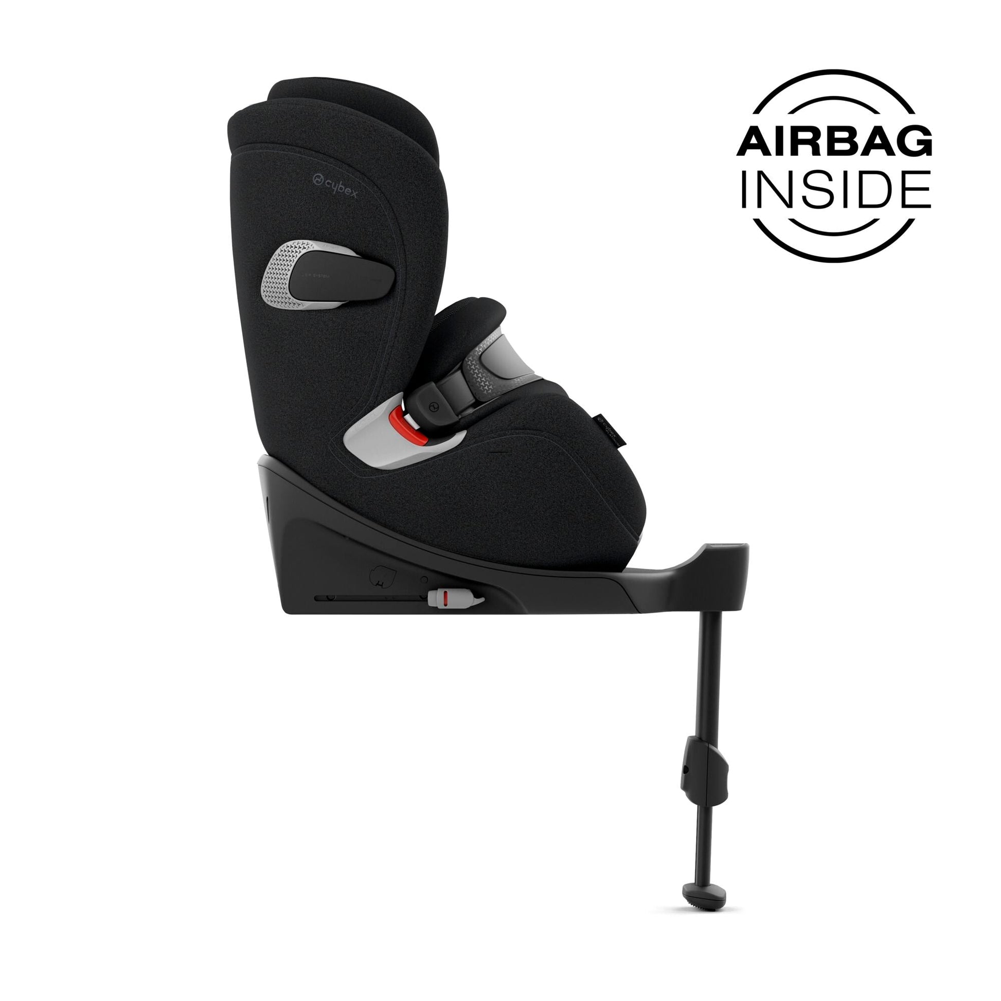 - A compact, cushioned impact shield gives ample room for your child to move around. Facing forwards also allows extra legroom to stretch out on long trips, avoiding cramps. In fact, Cybex studies show that most kids find impact shields much comfier than harnesses. And, if it's needed, the full-body airbag is ready to spring into action to keep the child securely in the seat.