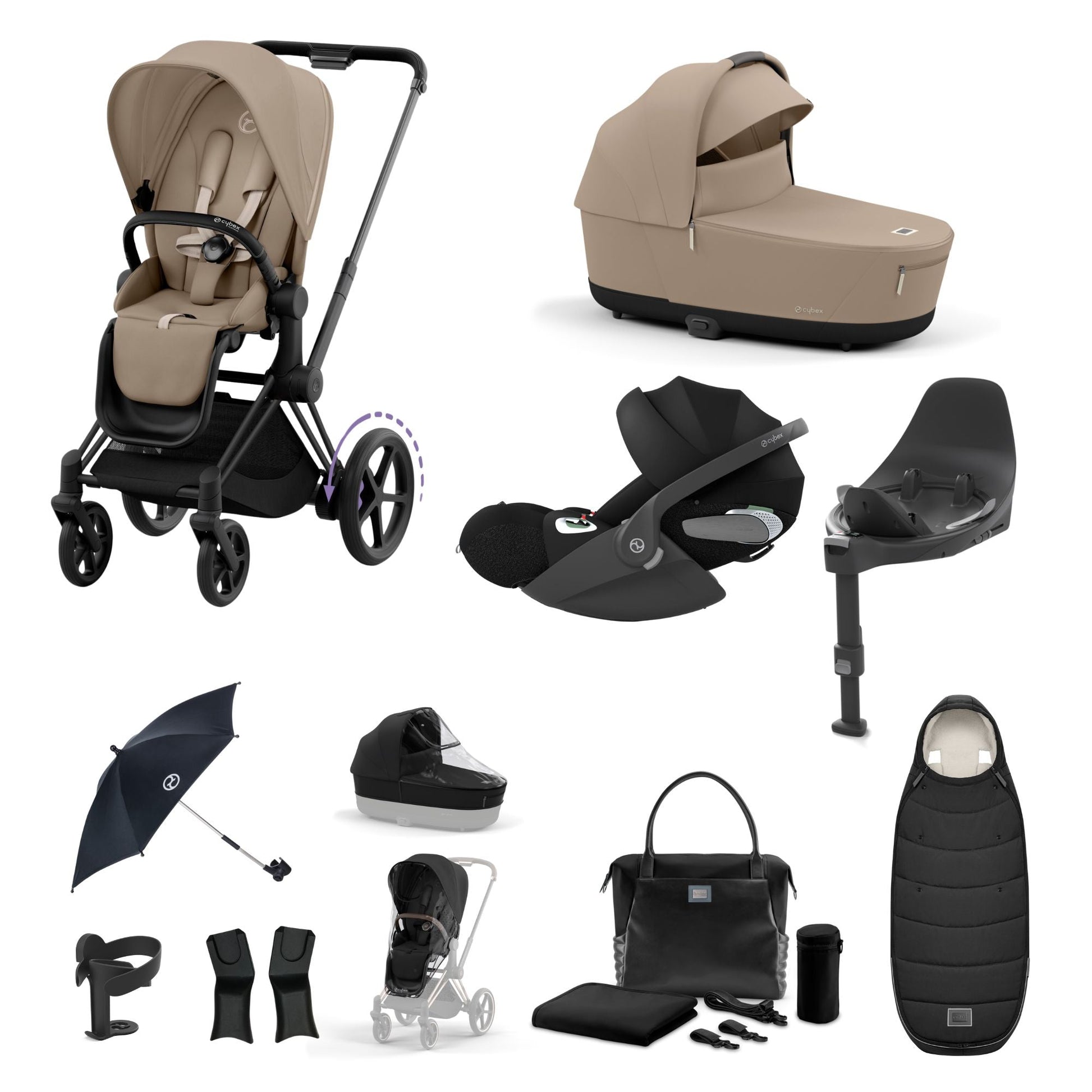 The CYBEX e-PRIAM Bundle in Cozy Beige combines e-technology with design, serves as base for your New Generation e-Priam pushchair and is available in four elegant colours. You can attach one of four different options to the frame, depending on the age of the child: the Lux Carry cot, the Lite Cot, the Cloud T i-Size baby car seat or the New Generation Priam Seat Pack. Lux Cot, Lite Cot and Cloud T i-Size car seat must be purchased separately.