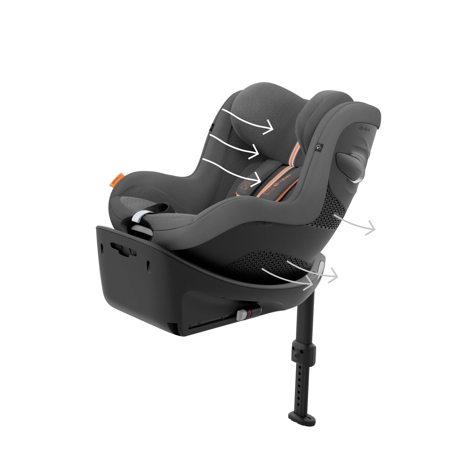The Sirona G i-Size Plus car seat in Lava Grey has 360° rotation making on-boarding so simple. Integrated Linear Side-Impact Protection and all-round ventilation keep your child safer and cooler.