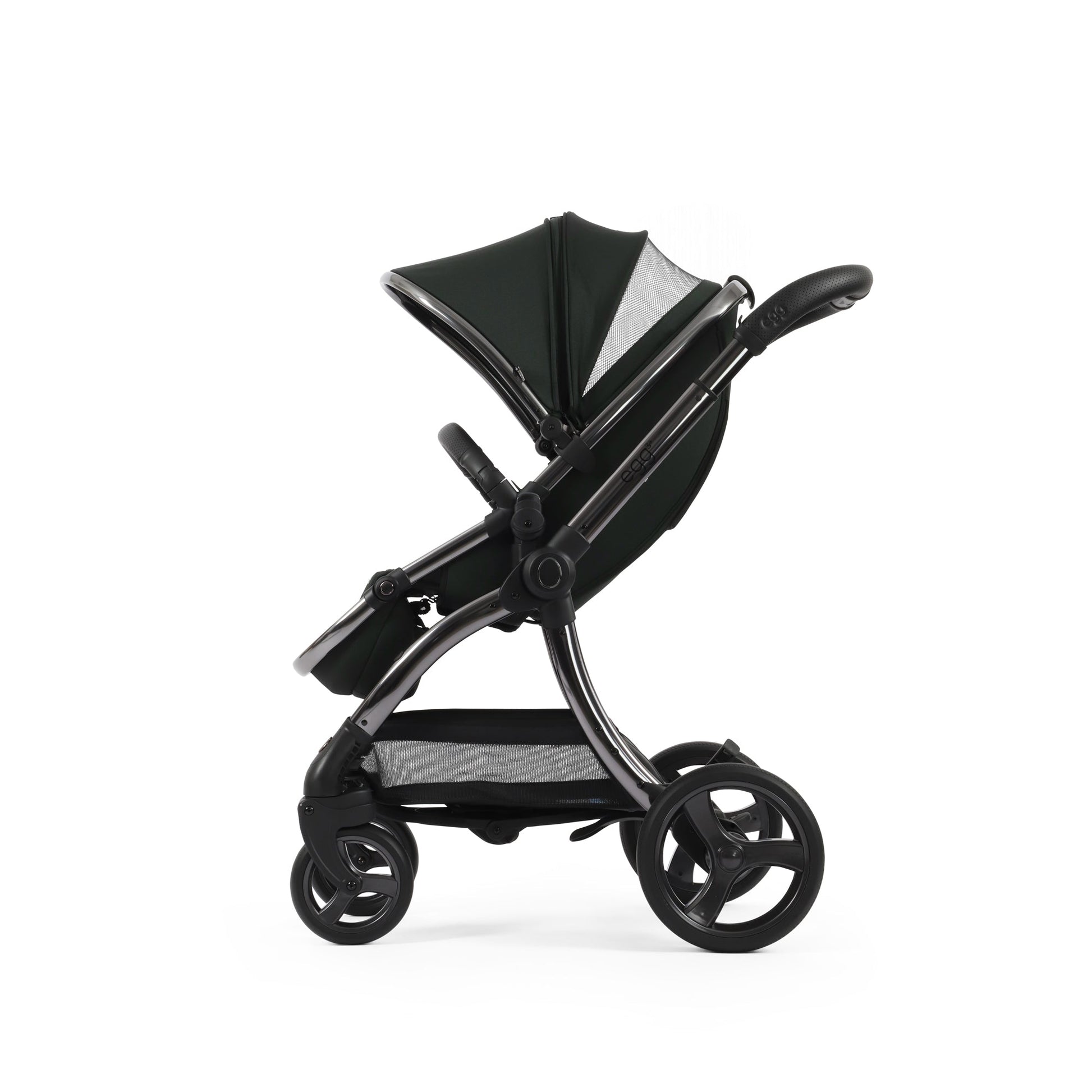 The egg3® Stroller in Black Olive showcases an enhanced, extendable canopy, perfect for day-time naps or so you can fully protect your little one from the sun with its 50+ UPF fabrics. The canopy also incorporates a ventilation window for optimal airflow, which can be seamlessly closed using magnets sewn into the fabric.