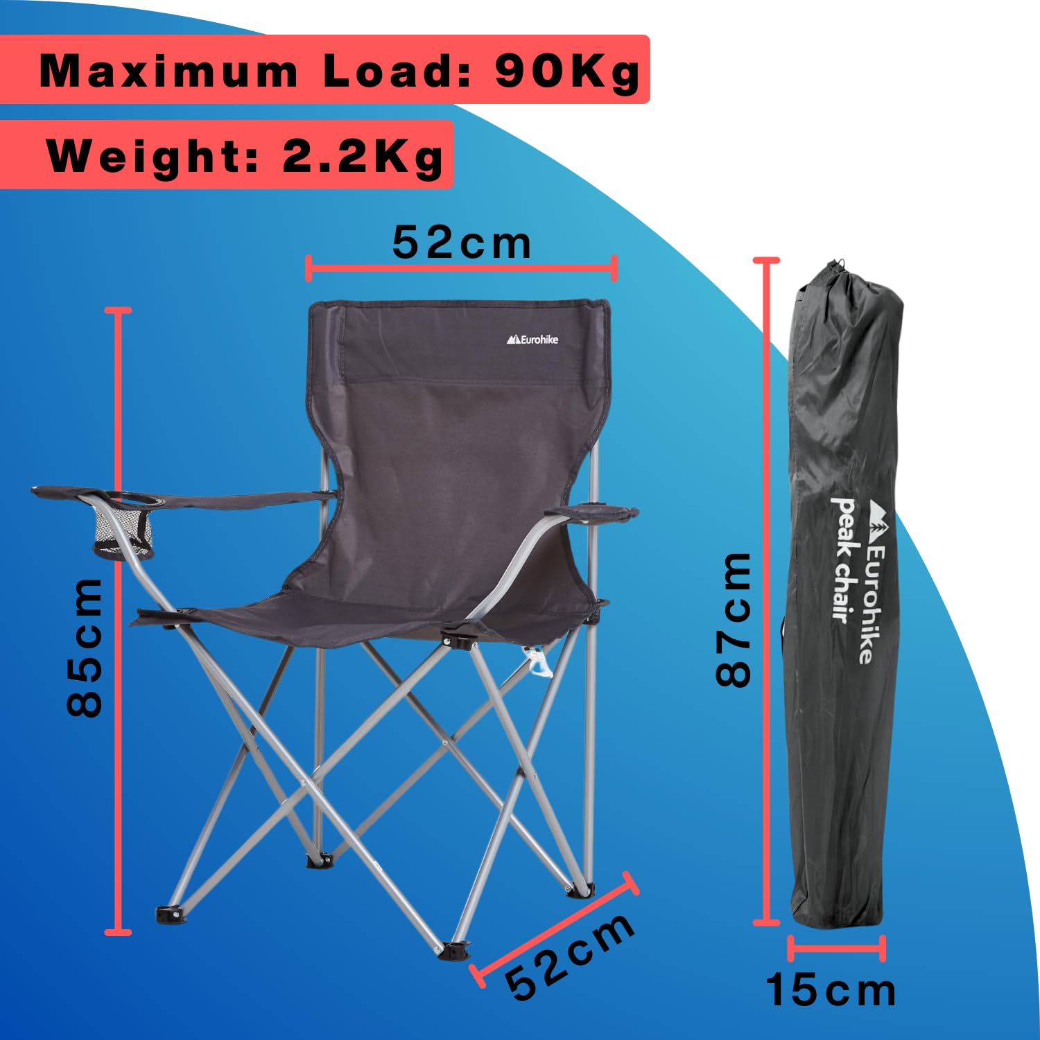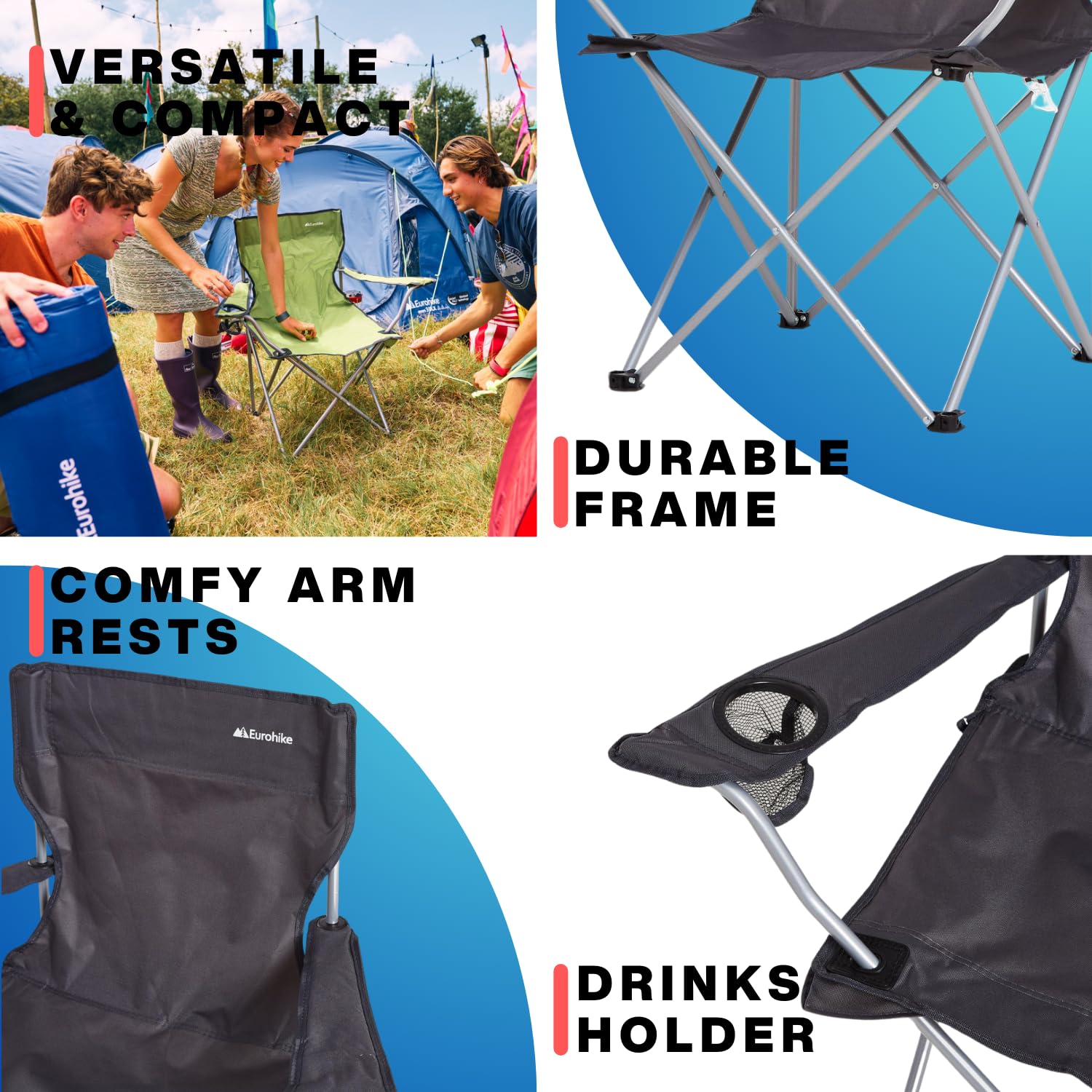 Eurohike Peak Folding Chair – Lightweight, Portable with Drinks Holder & Arm Rests – Grey