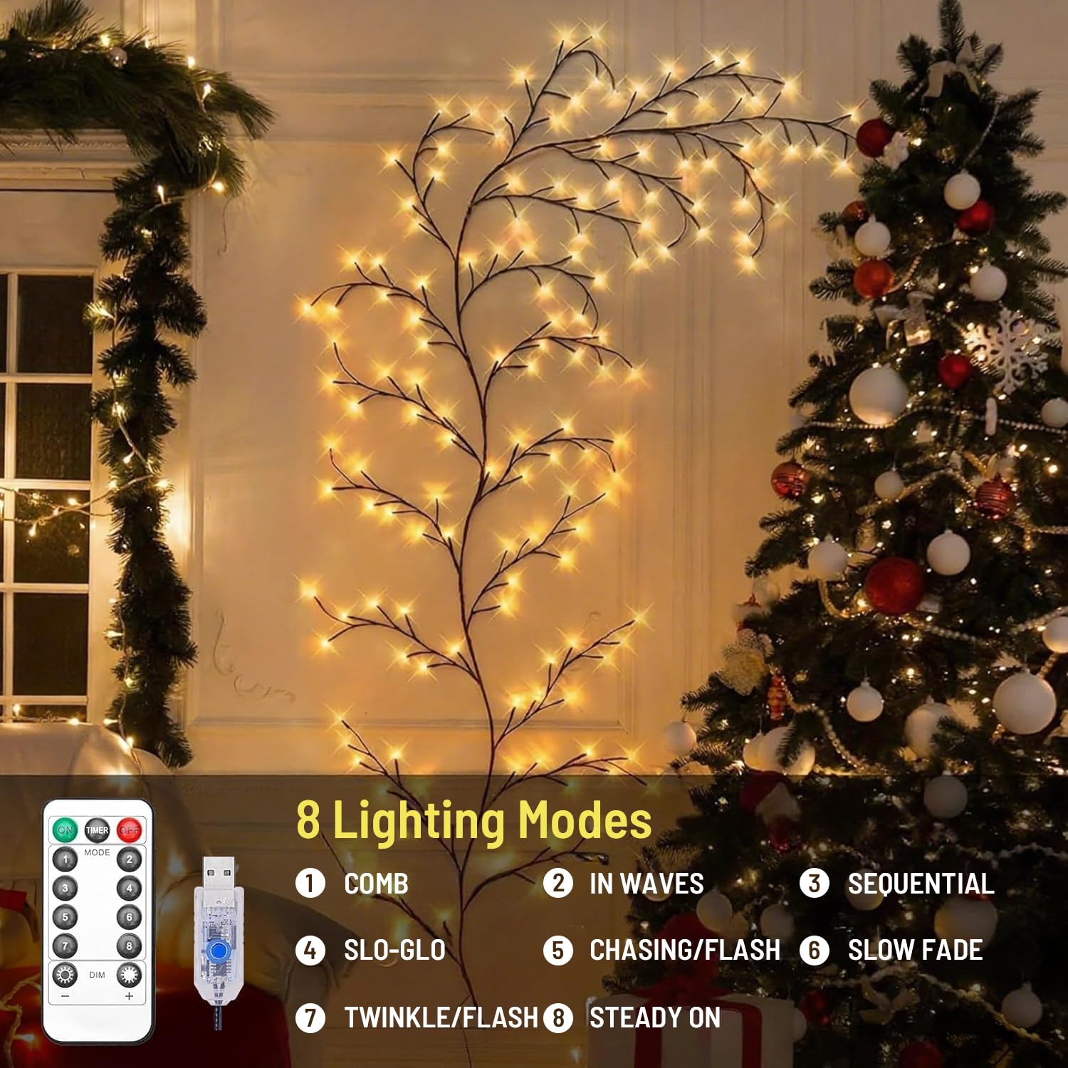 The bendable branches allow you to shape the lights to fit walls, shelves, headboards, or mantels. With 8 lighting modes and a convenient remote control, you can switch between subtle shimmer, steady glow, or festive twinkle to match any mood or occasion.