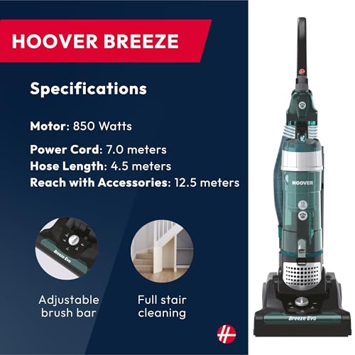 The Hoover Breeze Evo Pets Corded Upright Vacuum Cleaner delivers powerful suction and versatile cleaning in a lightweight, compact design. Ideal for stairs, carpets, hard floors, and pet hair, it combines convenience with performance for everyday home cleaning.