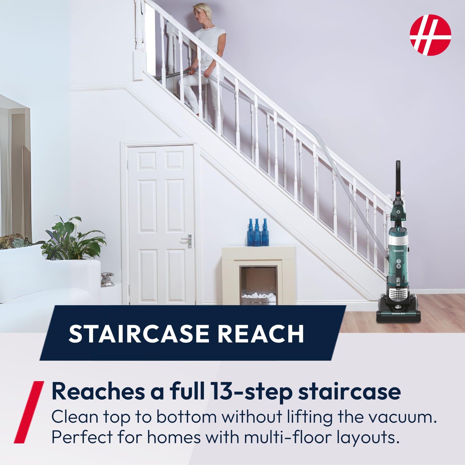 Lightweight & Compact: Effortlessly maneuver around stairs, tight spaces, and large rooms. Easy to store thanks to its upright, space-saving design.