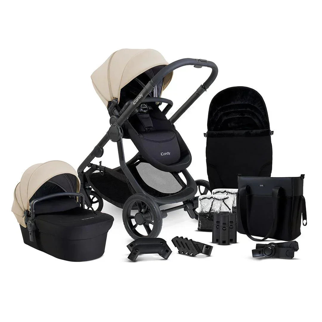 The iCandy Orange 4 Pushchair Bundle in Fossil is the ultimate companion when it comes to parenthood and the beautiful, multi-functional pushchair is ready for adventure, every step of the way. Single-to-double ready, straight out of the box, the new Orange 4 features functionality modifications, softer suspension and greater manoevrability to enhance day to day life as well as comfort and a smoother ride for both parent and child. These adaptations don’t come at the expense of style, with the iCandy Orange 4 exuding a sophisticated and improved aesthetic. The water repellent breathable canopy, with mesh ventilation, is available in five fashion-forward colours - Pistachio, Fossil, Latte, Rose and Black Edition on a Jet Black chassis. An ingenious integrated Ride-on Board, lightweight and streamlined chassis and super spacious basket, means the iCandy Orange 4 is ready from the get-go, making it the ultimate choice for both first-time parents and growing families.