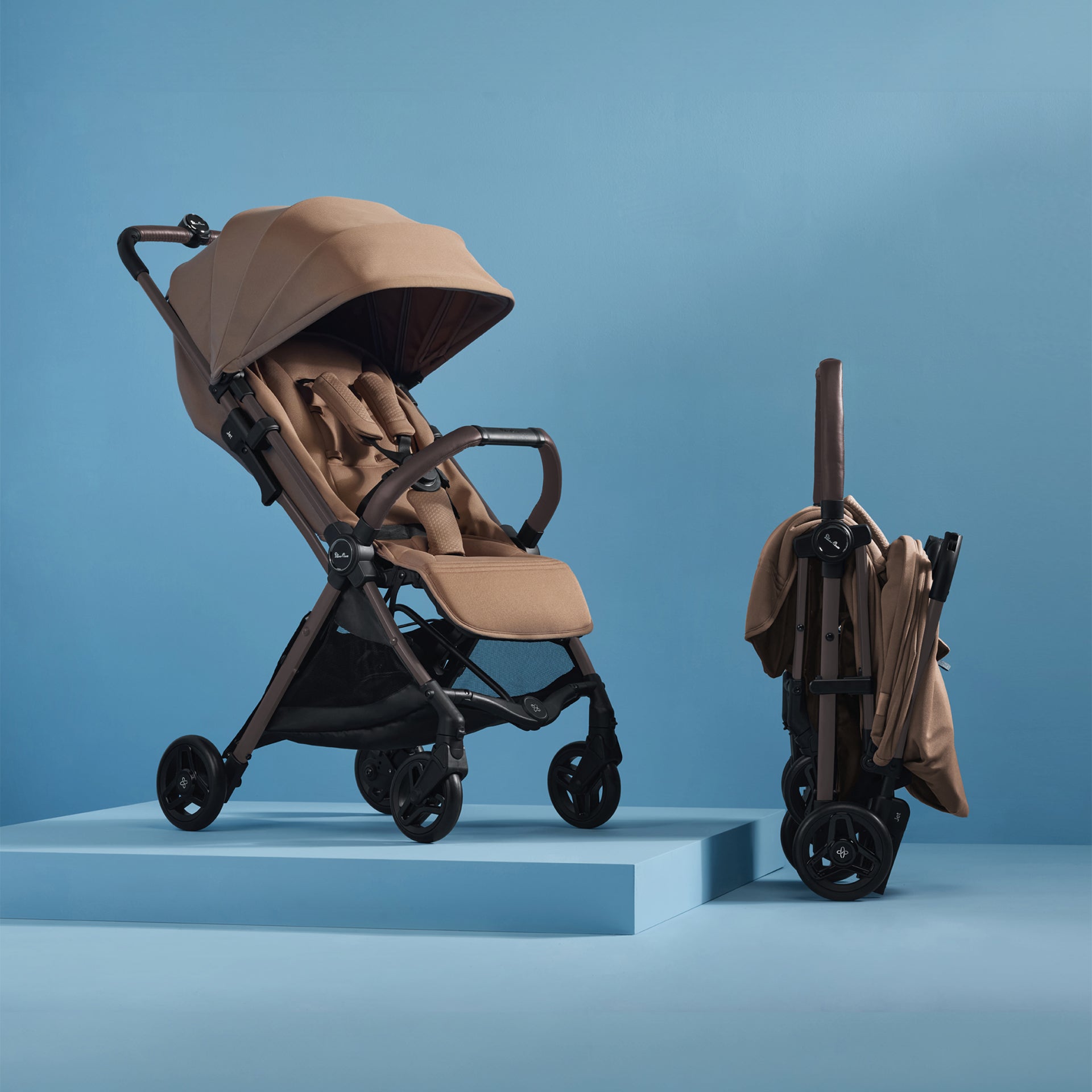 From departure to arrival, the Silver Cross Jet 5 in Cinnamon is your perfect travel companion with its lightweight and compact design, lie-flat seat, self-standing pull-along fold and protective travel cover.