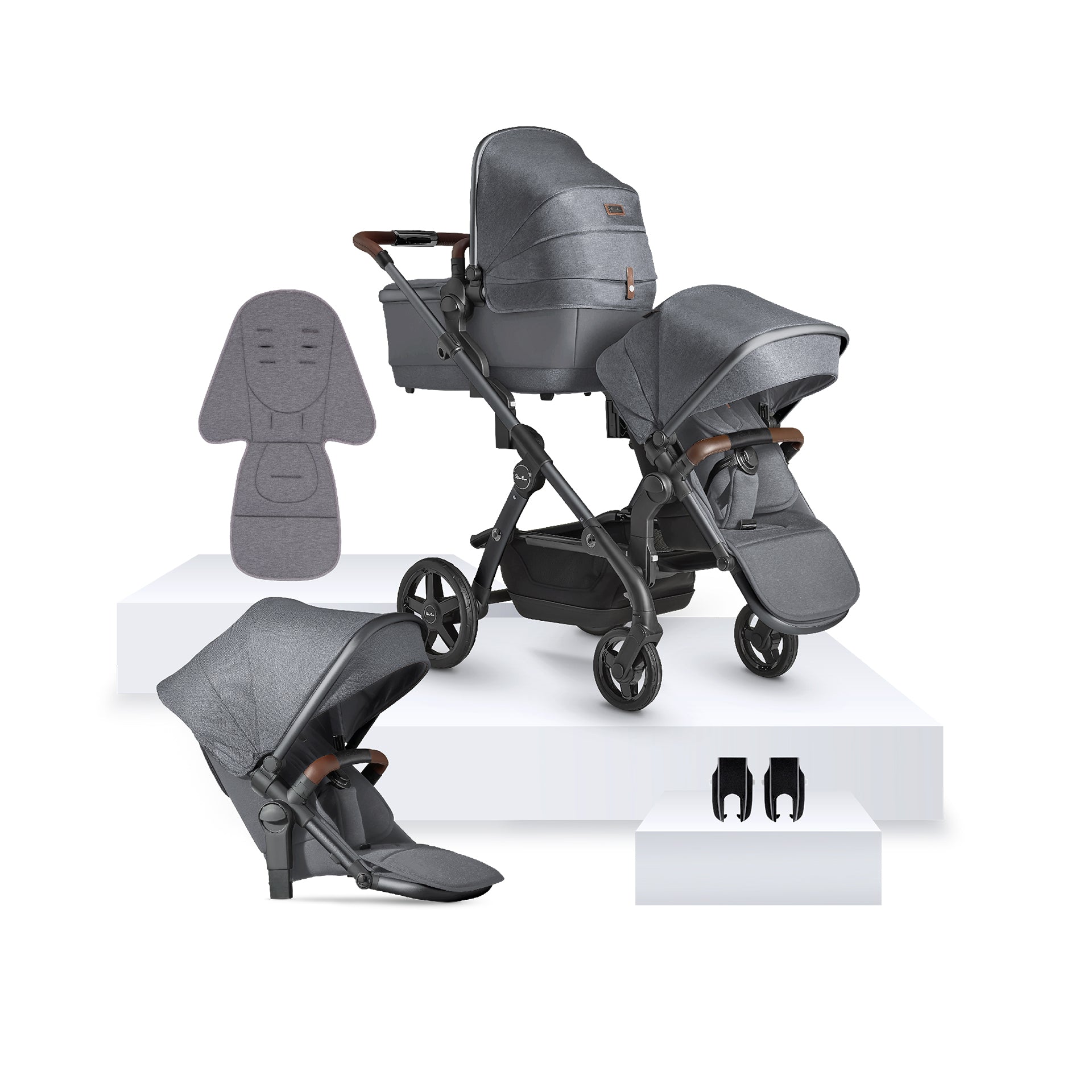 - Choose from 12 single to double stroll modes straight out of the box with the carrycot, pushchair seat and tandem seat.